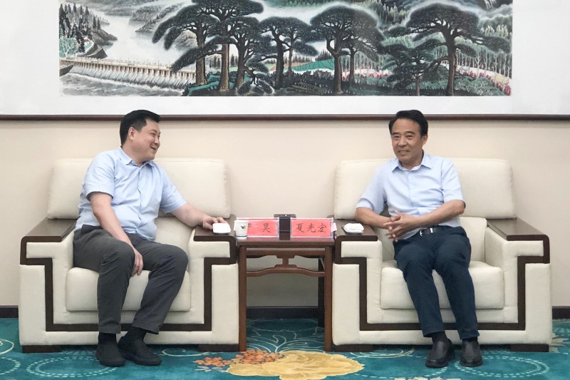 6月8日,严昊主席与湖北省荆州市公安县委书记夏光宏会谈,双方就公安县基础设施建设等项目合作展开深入交流。