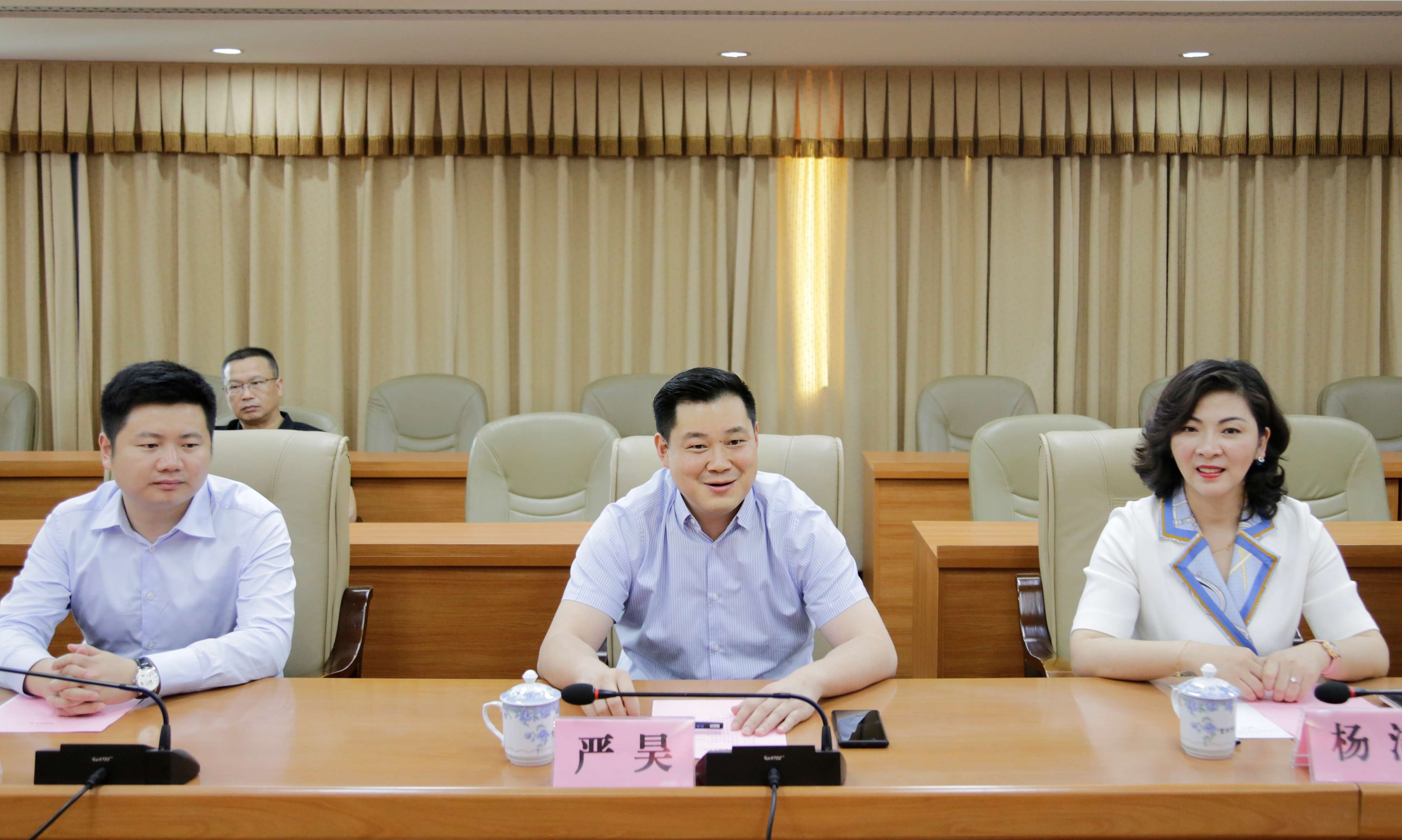 7月8日,严昊主席与广西贺州市委副书记、市长彭代元会谈,双方就进一步深化合作进行友好交流。