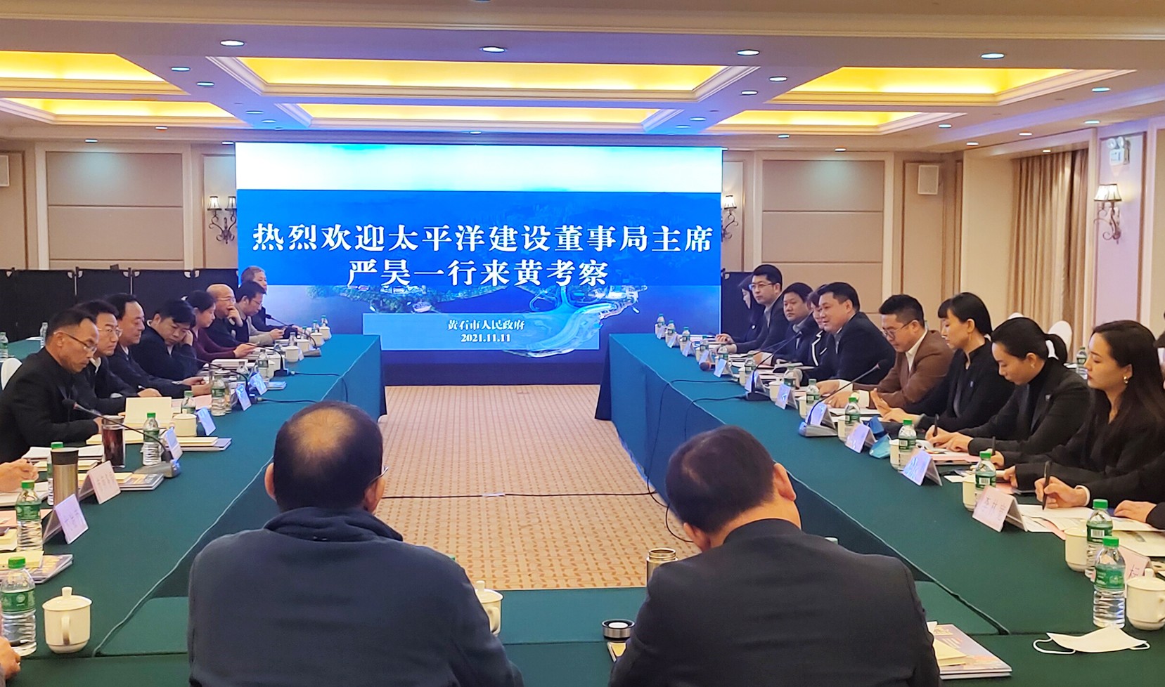 经营中心总经理刘非凡,中舒建设经营中心总经理王韵;黄石市政府秘书长胡敏,市招商服务中心、开发区·铁山区主要负责人,市发改委、财政局、住建局、交通运输局、水利和湖泊局、商务局、乡村振兴局、城发集团、东楚投资集团分管负责人;大冶市、阳新县招商分管负责人;磁湖高新主要负责人参加会谈。(文/图 中舒建设文品中心)