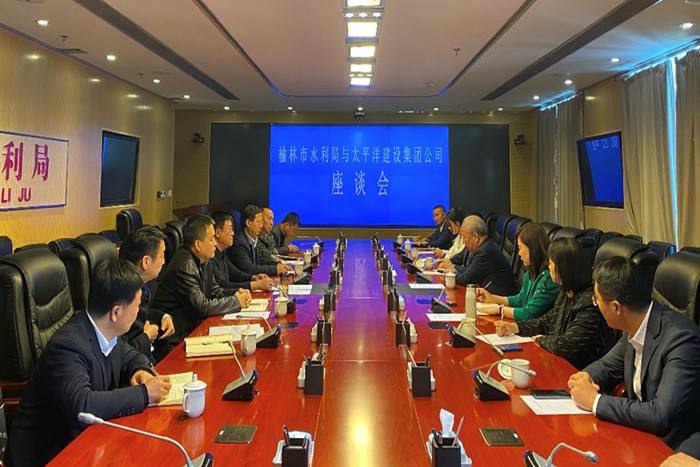 港珠澳建设十一集团董事局主席胡亚岩,一集团董事局主席汪国志,五集团董事局主席管瑞,七集团董事局主席张柯,庄严景旅董事、CEO刘尧,港珠澳建设董事、经营总裁、十一集团董事局副主席顾盈盈,十一集团区域经理黄紫英,十一集团经营中心总经理刘澜;榆林市水利局党组成员、副局长郭建彪,党组成员史社刚、杨思炯,政秘科科长陈永东,榆阳区水利局局长李荣参加会谈。(文/图 港珠澳建设文品中心)