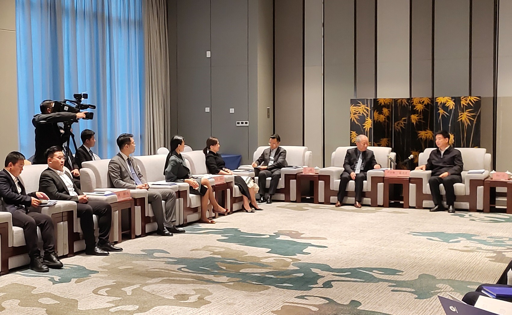 经营中心总经理刘非凡,中舒建设七集团宝鸡区域负责人杨波;宝鸡市政府党组成员佘俊臣,市委秘书长许海峰,市政府秘书长陈小平、副秘书长张海峰,市住建局、市交通局、金台区、扶风县、眉县、陈仓区、蟠龙新区、市水利局、市投资(集团)有限公司主要领导参加会谈。(文/图 中舒建设文品中心)