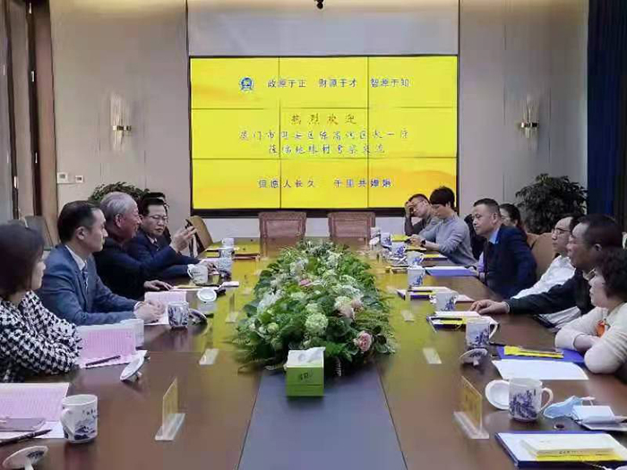3月7日,严介和理事长在地球村会见厦门市同安区区长陈高润一行,就推进双方合作进行会谈。