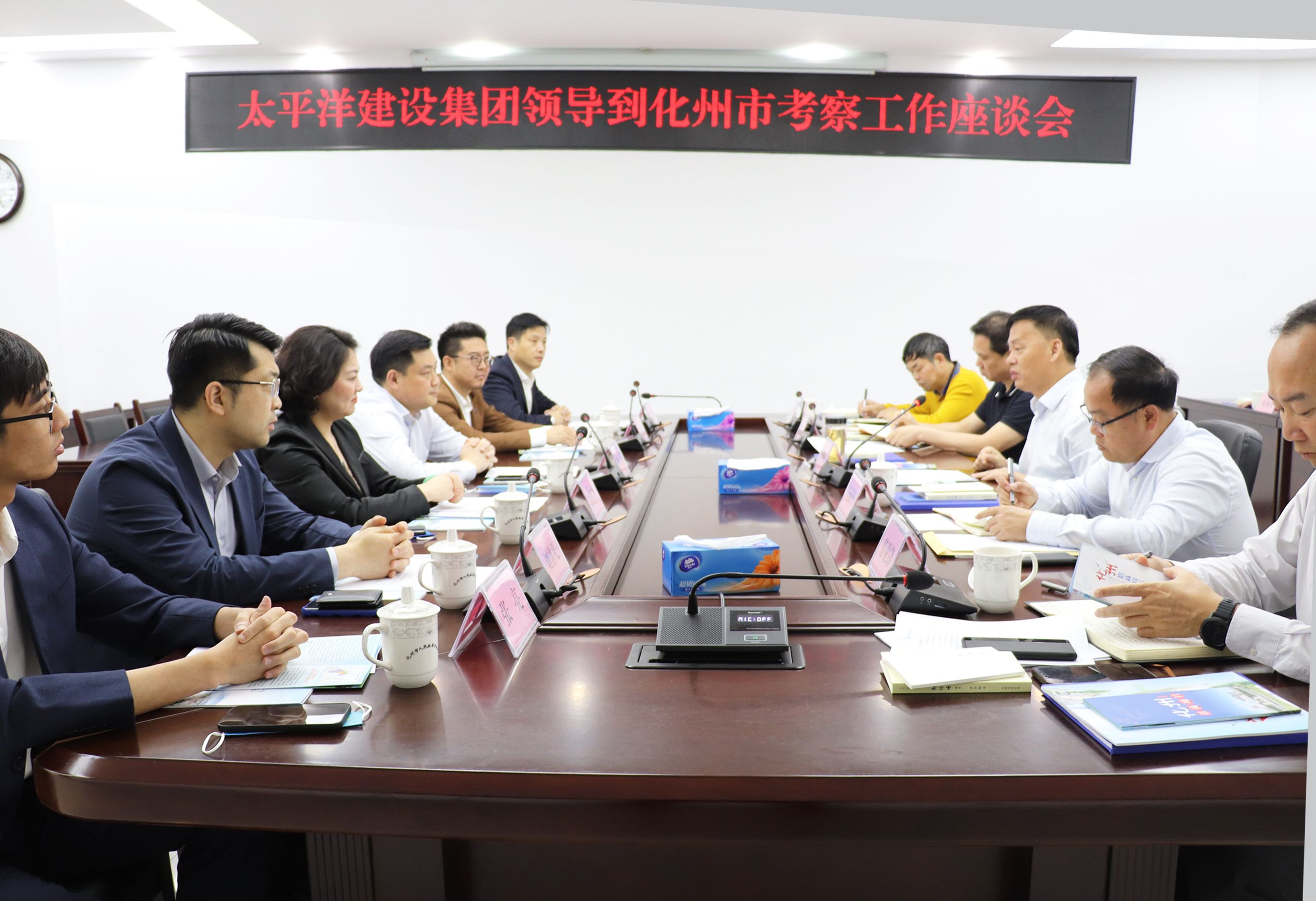 3月17日,严昊主席赴广东省化州市与市委副书记、市长邓向明会谈,双方就化州市基础设施建设投资进行友好交流。