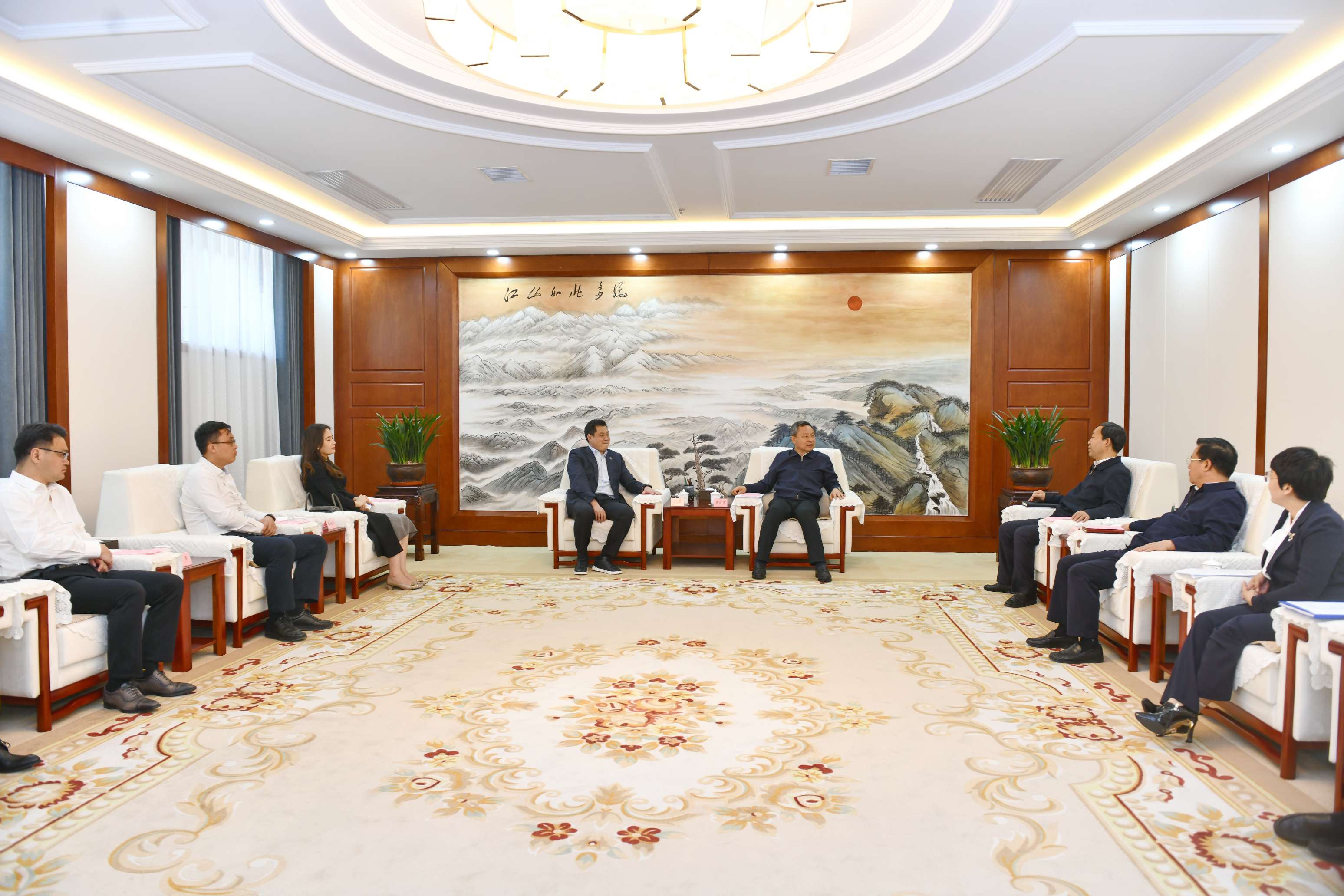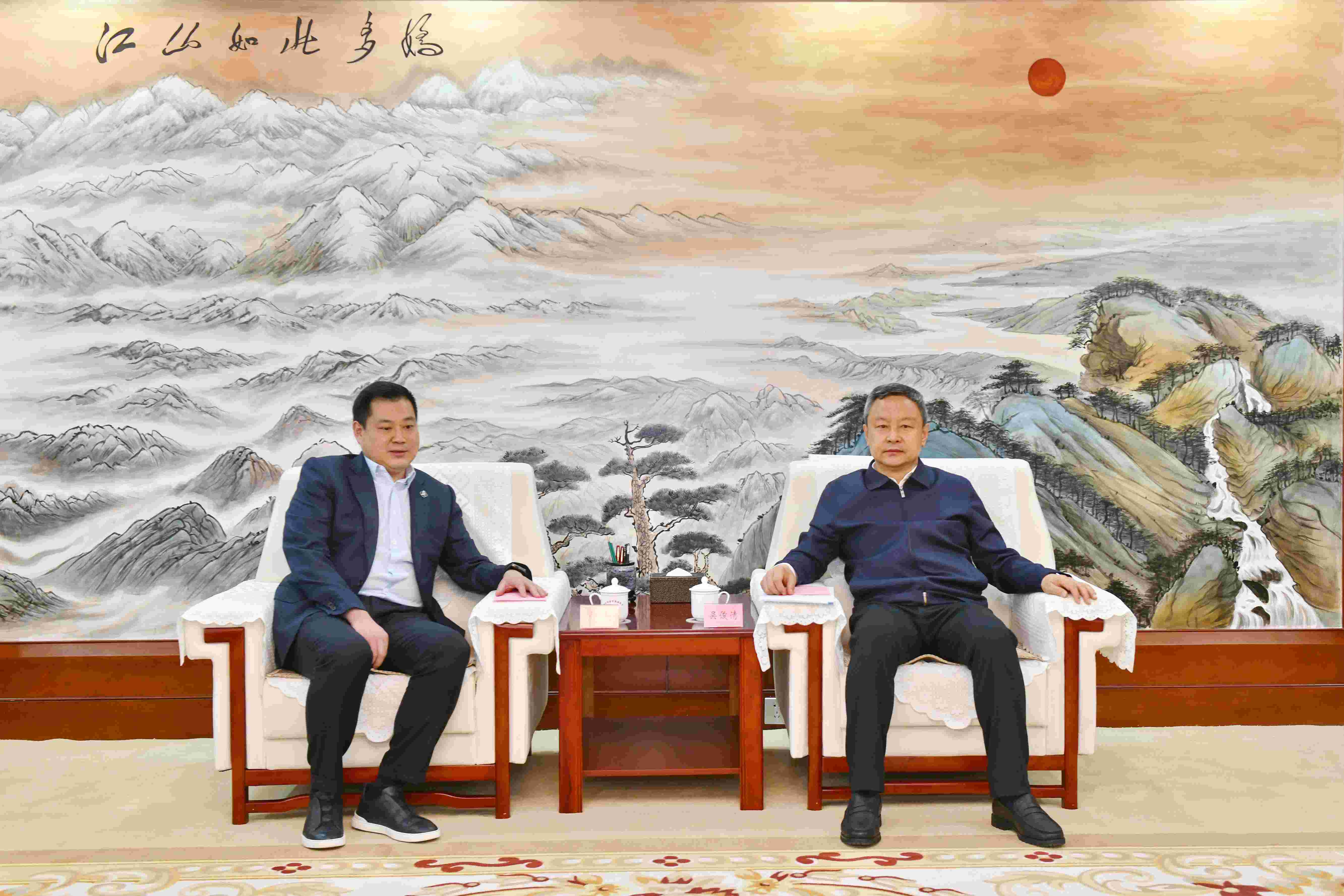 5月20日,严昊主席与山西省晋中市委书记吴俊清,市委副书记、市长常书铭举行会谈,双方就如何抢抓山西发展新机遇,助推晋中经济高质量发展进行深入交流。