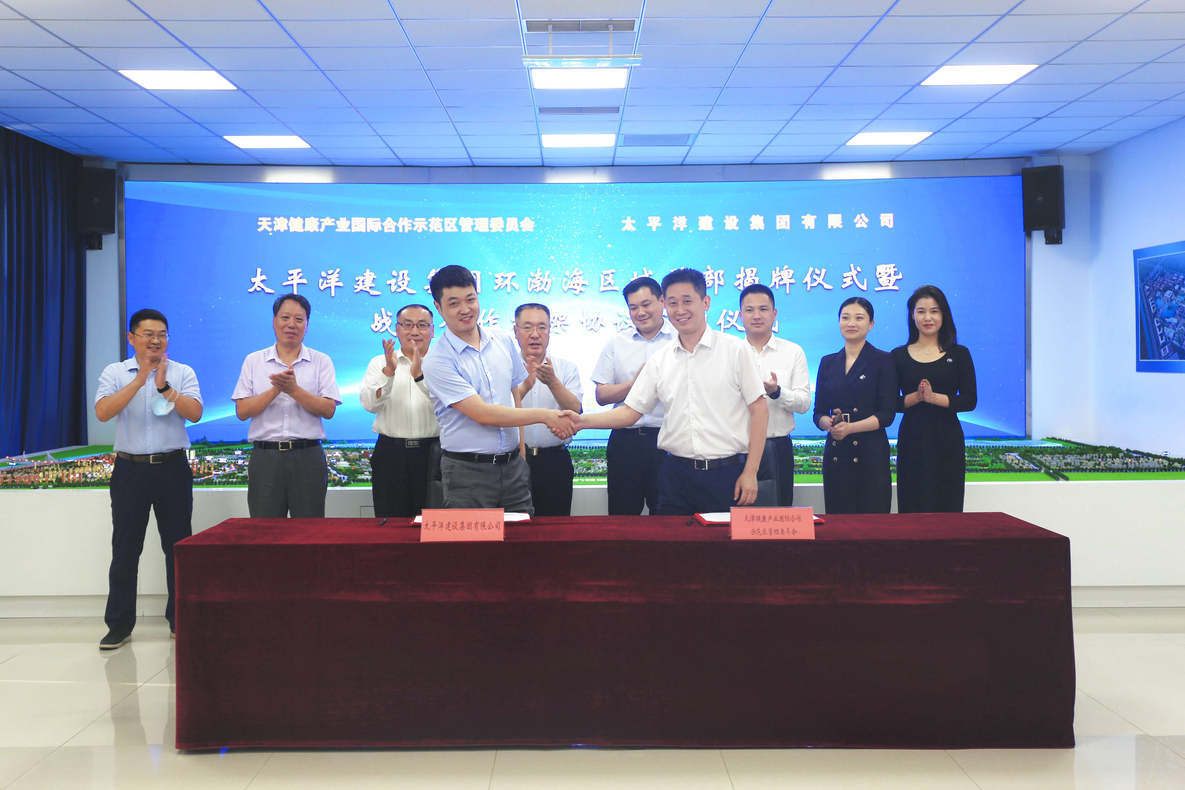 环渤海区域总部揭牌暨战略合作框架协议签约仪式在天津健康产业国际合作示范区举行。严昊主席与天津静海区委书记刘春雷为环渤海区域总部揭牌。仪式前,双方就如何抢抓静海发展新机遇,助推静海经济高质量发展进行深入交流。
