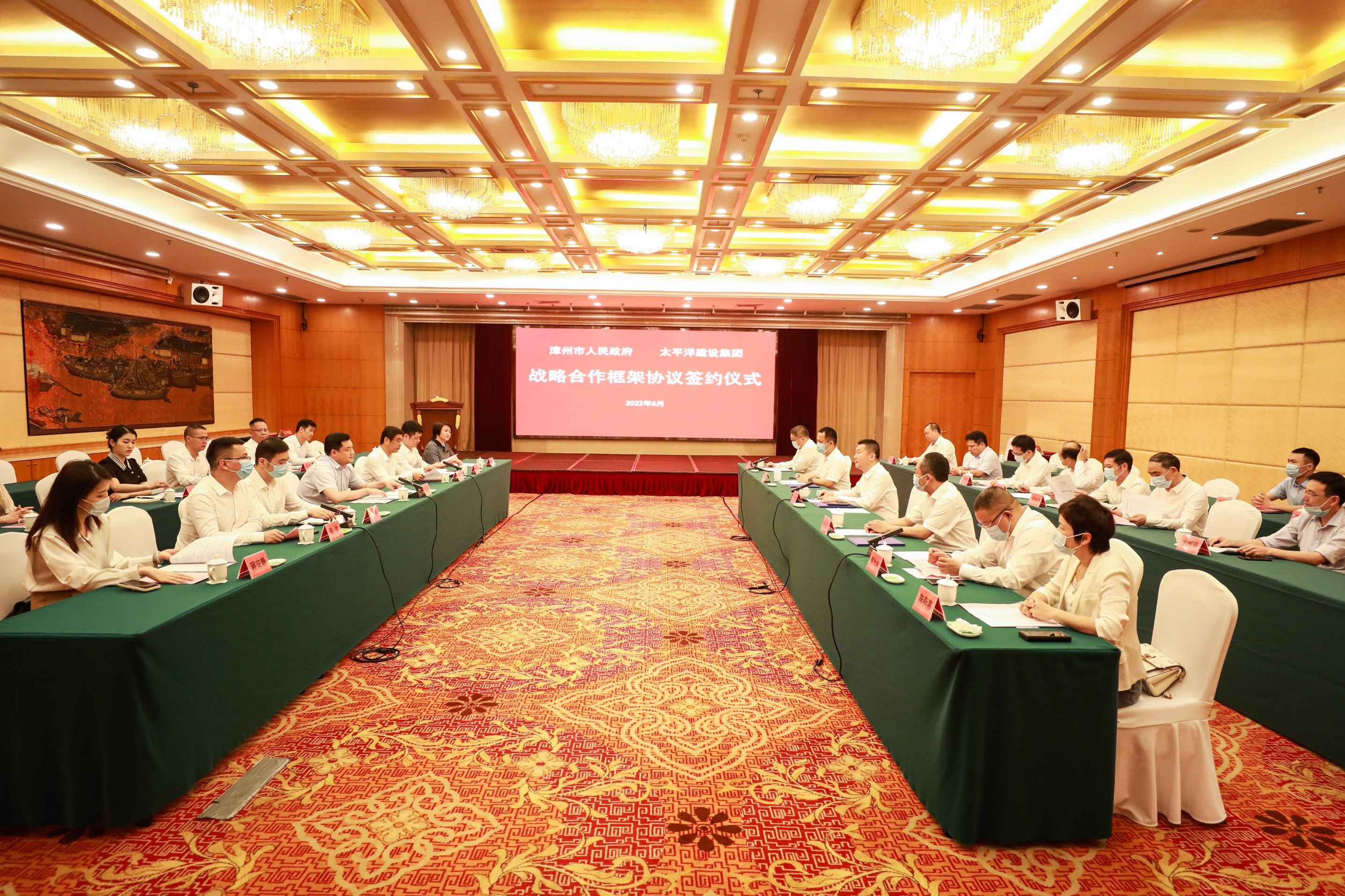 6月13日下午,严昊与福建省漳州市委副书记、市长王进足会谈,双方签订100亿元战略合作框架协议。严昊主席出席仪式并见证签约,太平洋系二十四集团董事局主席黄悦与福建省漳州市副市长潘全胜分别代表双方签约。